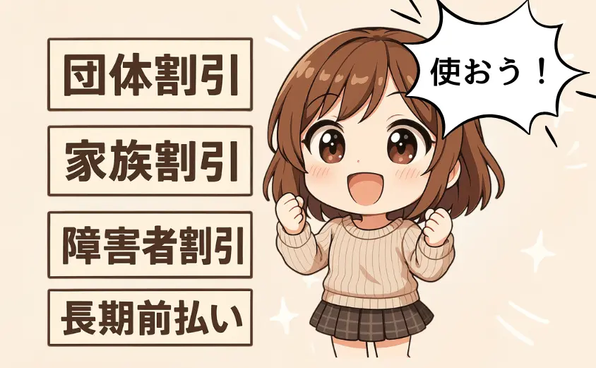 家族割引と障害者割引は負担軽減に有効です。申請を忘れないようにしましょう。