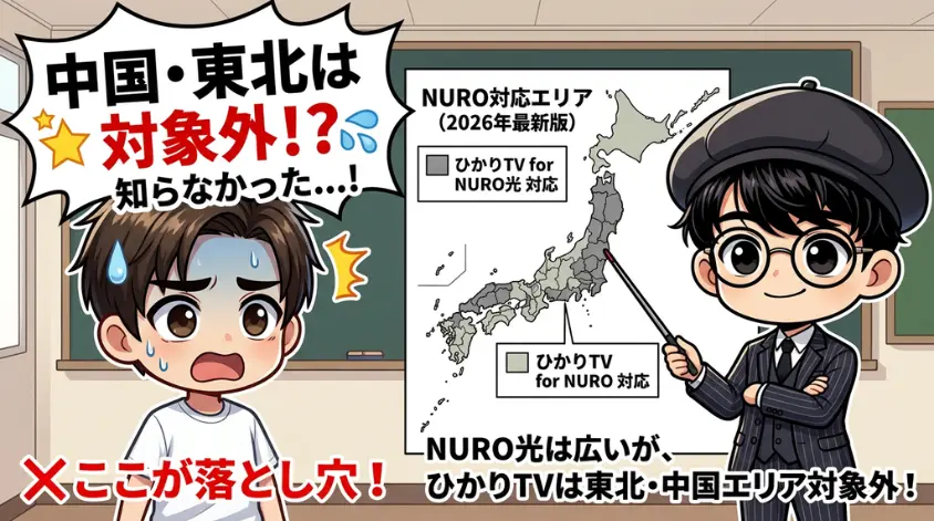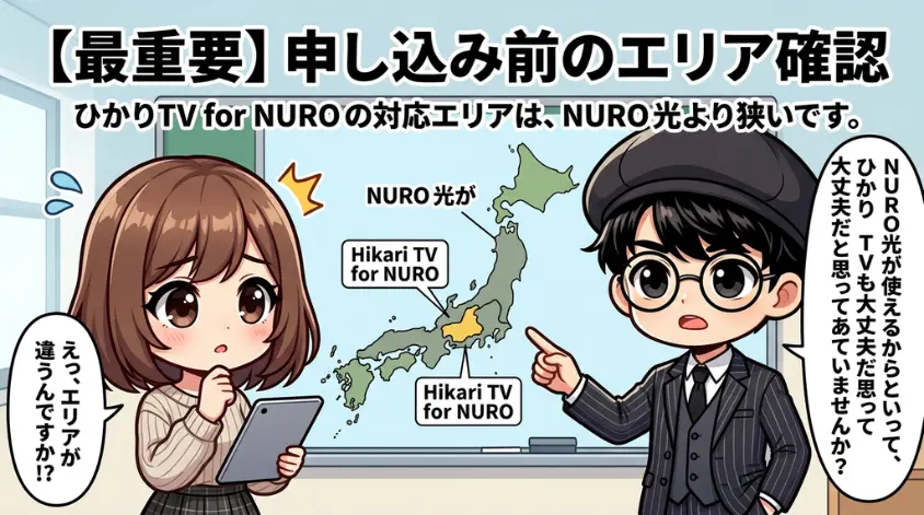 はっきり言います。ひかりTV for NUROの対応エリアは、NURO光の提供エリアよりも狭いです。