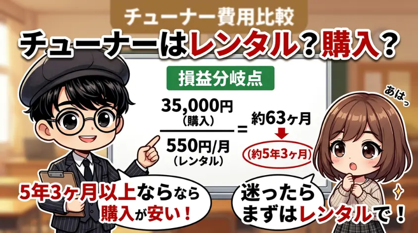 チューナー費用(レンタル vs 購入)の損益分岐点