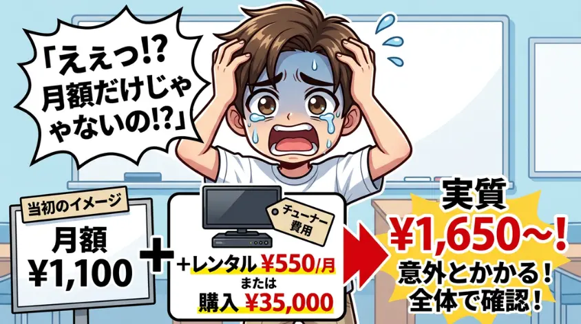 - 月額550円のチューナーレンタル費用が発生すること
