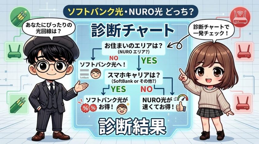 【診断チャート】あなたはソフトバンク光・NURO光どっち?