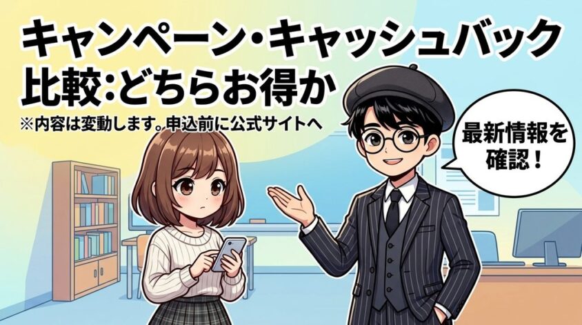 よかった。これで迷いは消えたはずだ。あとは公式サイトで最新のキャンペーンを確認して、申し込むだけだよ。