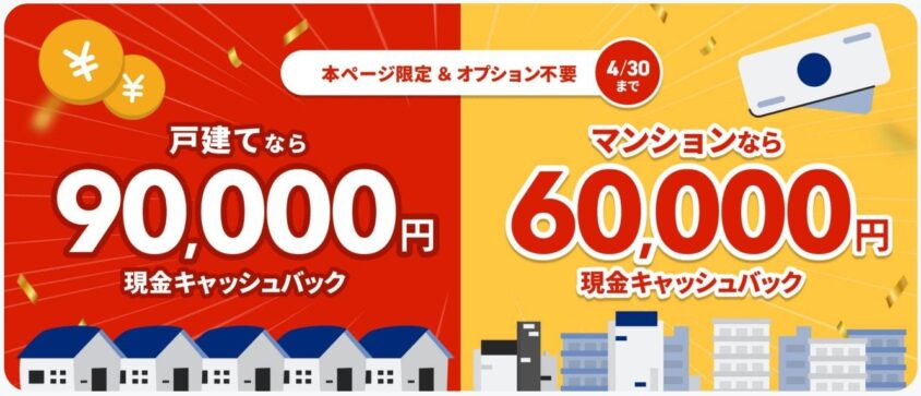 - キャッシュバック最大90,000円&工事費実質無料