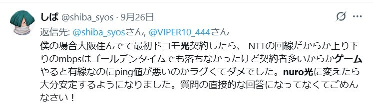 - 安定性: 家族の誰かが回線を使うと速度が低下するストレスがなくなる