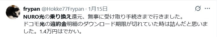 一方で、「NURO光の解約金還元」を受け取れたという声も見られます。