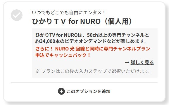 複数のオプションからひかりTV for NUROを選択します。