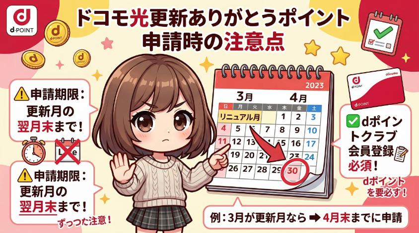 ドコモ光更新ありがとうポイントの申請時には、いくつか注意すべきポイントがあります。