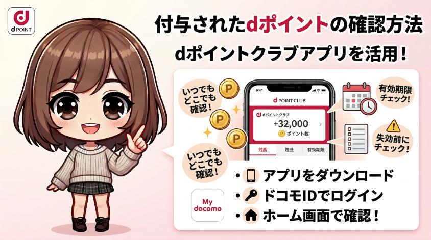 付与されたdポイントは、dポイントクラブアプリやMy docomoで簡単に確認できます。