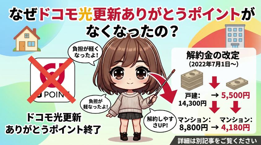 ドコモ光更新ありがとうポイントが終了した背景には、解約金の改定が深く関係しています。